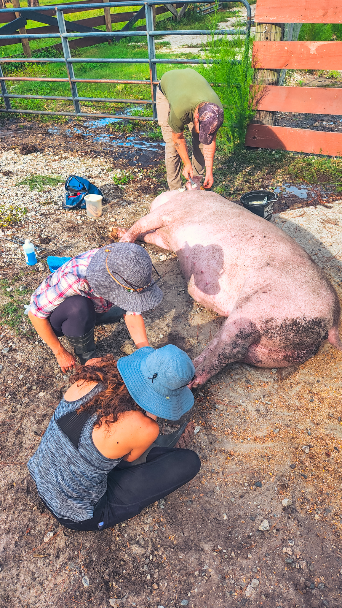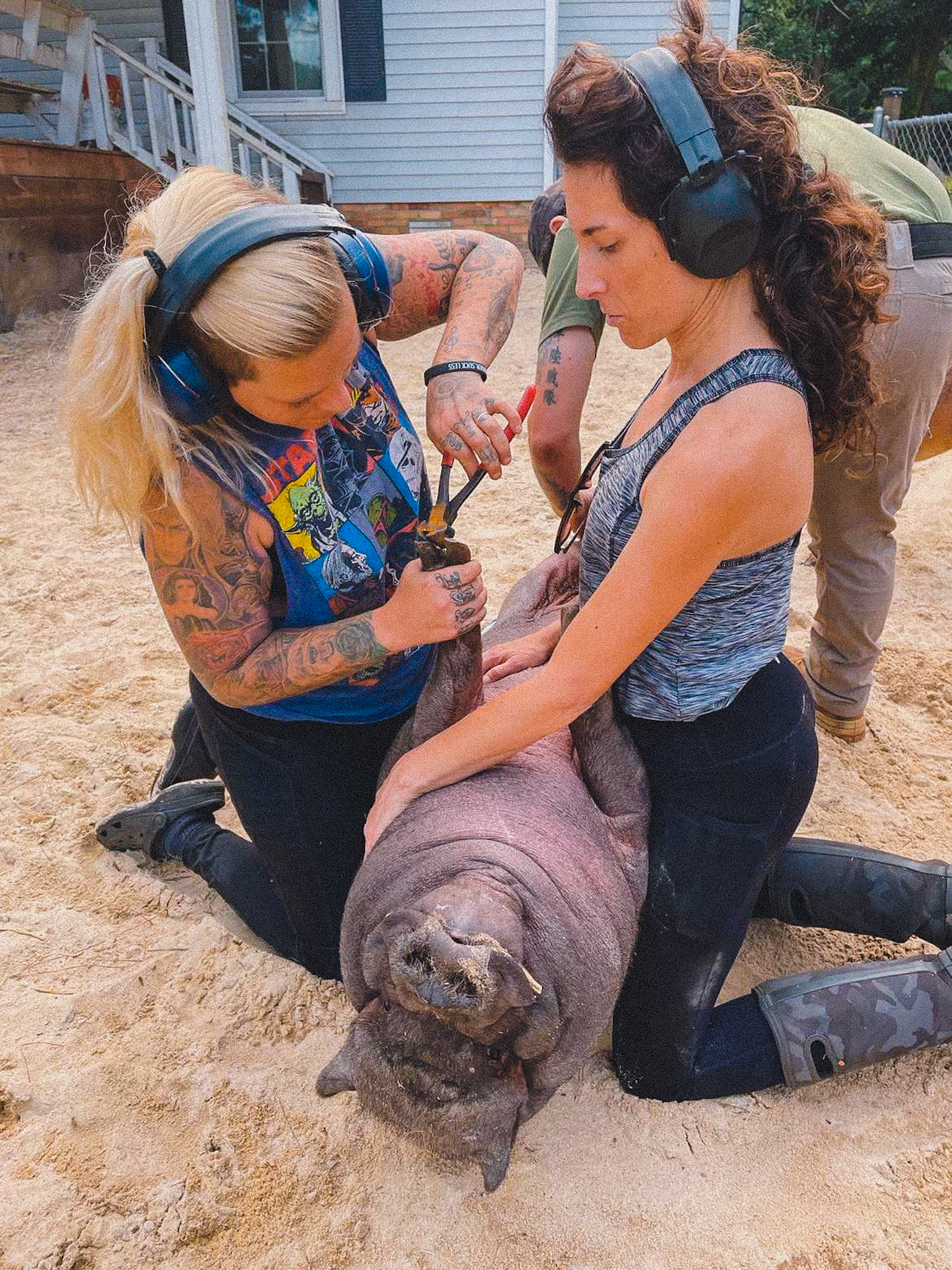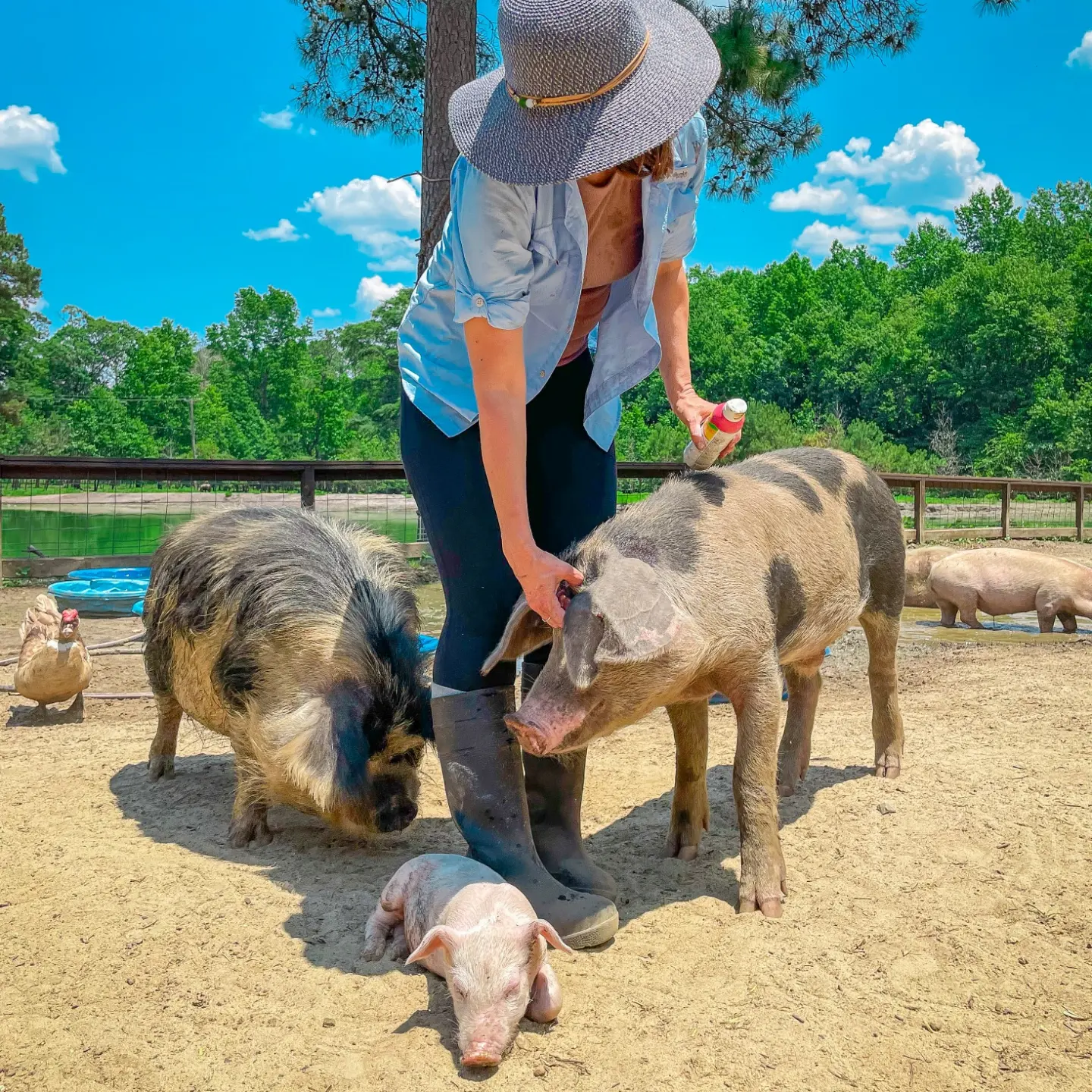We regularly work with local and national animal shelters to ensure the rescue and safe placement of large breed pigs and other farmed animals.
